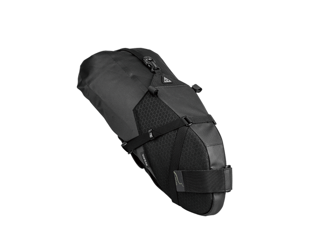 A large capacity seat bag specifically designed for bikepackers wanting a streamlined way to carry gear without the need for a rear rack. The reinforced, anti-slip/scratch fabric protects the saddle while the advanced mounting system enables convenient and secure mounting to seatpost and saddle rails. Easy access waterproof carry bag and built-in air release purge valve keeps bag compact and dry while you’re on your next adventure.
